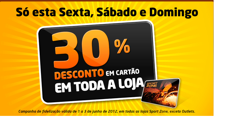 Desconto de 30% em cartão até 03/06/2012 na Sportzone.